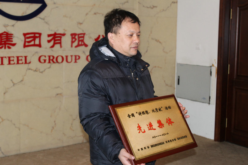 调研期间,李树才代表中国科协和省科协,向西林钢铁集团公司企业科协颁发了2011—2012年度全国“讲理想、比贡献”先进集体奖牌。西林钢铁集团技术中心主任、总工程师宋斌,顾问李良玉等同志陪同调研和座谈。座谈会上,西林钢铁集团总工程师宋斌、科技顾问李良玉一致表示,中国科协、省科协在我们企业面临市场销售困难的情况下,把荣誉给了我们,我们感觉到是对我们企业的巨大鼓励和有力鞭策。今天伊春市科协领导又亲自把奖牌送给了我们,我们感到十分亲切和温暖,我们企业科协一定不辜负上级科协期望,组织企业科协进一步搞好“讲、比”活动,团结带领企业全体科技人员,以企业发展大局为重,自觉担当起推进企业发展和科技进步的重任,以“讲理想、比贡献”的实际行动,共度难关,同谋发展,再铸辉煌。(阚金红)