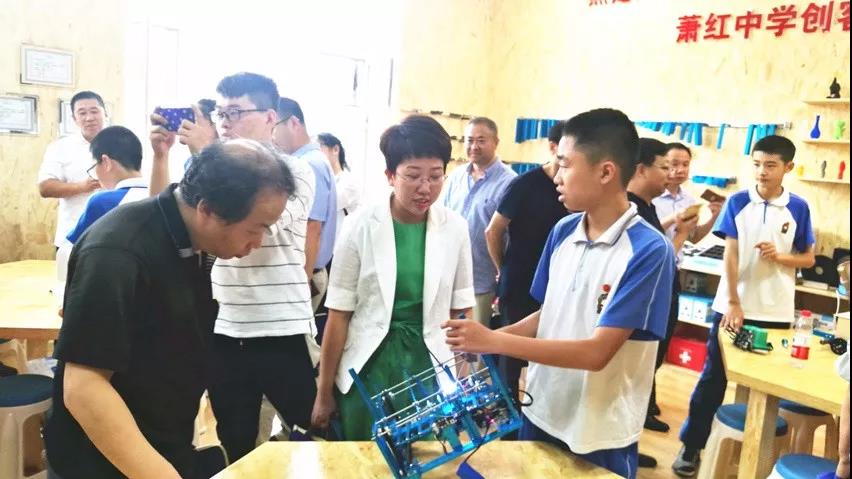 与会嘉宾一同参观位于萧红中学的省科协青少年科学工作室
