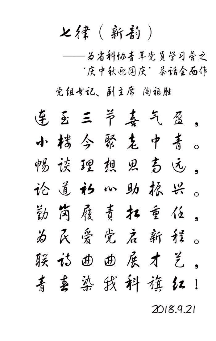 为大力弘扬中华民族优秀传统文化,充分发挥民族传统节日思想熏陶和文化教育功能,积极培育和践行社会主义核心价值观,引导青年干部通过追忆家乡文化、追寻家国情怀,传承中华民族传统文化,构筑中华民族精神家园。9月21日,值中秋佳节到来之际,省科协举办“弘扬传统文化 喜迎中秋佳节”青年党员学习营茶话会。党组书记、副主席陶福胜,党组成员、副主席臧晓敏,副主席夏永刚与青年党员一道喜迎中秋佳节。